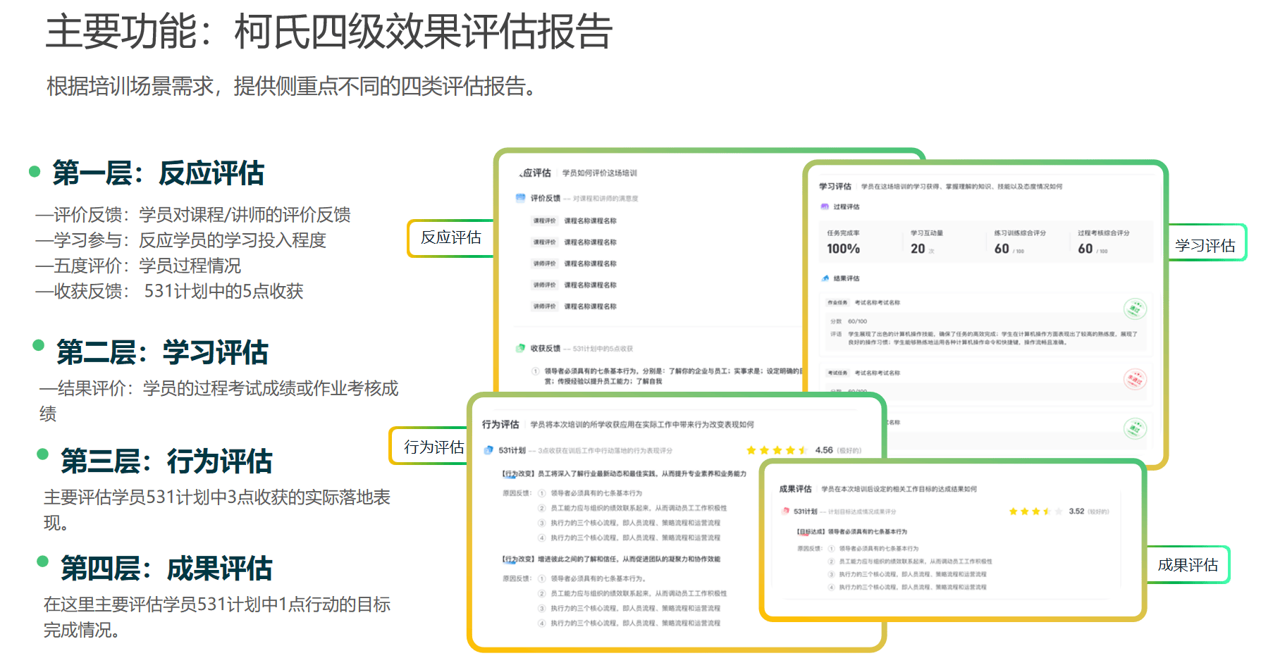 优秀的平台必须能够支撑柯氏四级评估(Kirkpatrick Model)的落地。在这方面,EduSoho企培的**“数据驾驶舱”**提供了极具价值的解决方案: