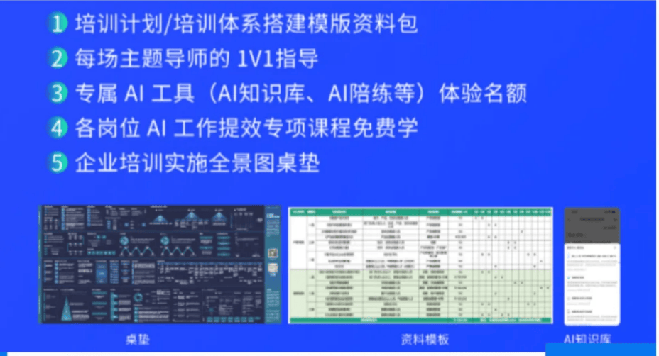 - 全景图桌垫:企业培训实施全景图桌垫,让 AI 落地步骤一目了然。