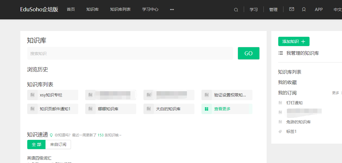 已登录:用户可以查看并管理知识库及相关的知识内容,并且支持点赞、收藏、分享、编辑和订阅。