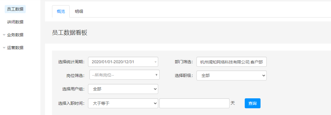 可根据时间/部门/岗位/职级/用户组/入职时间为维度进行筛选: