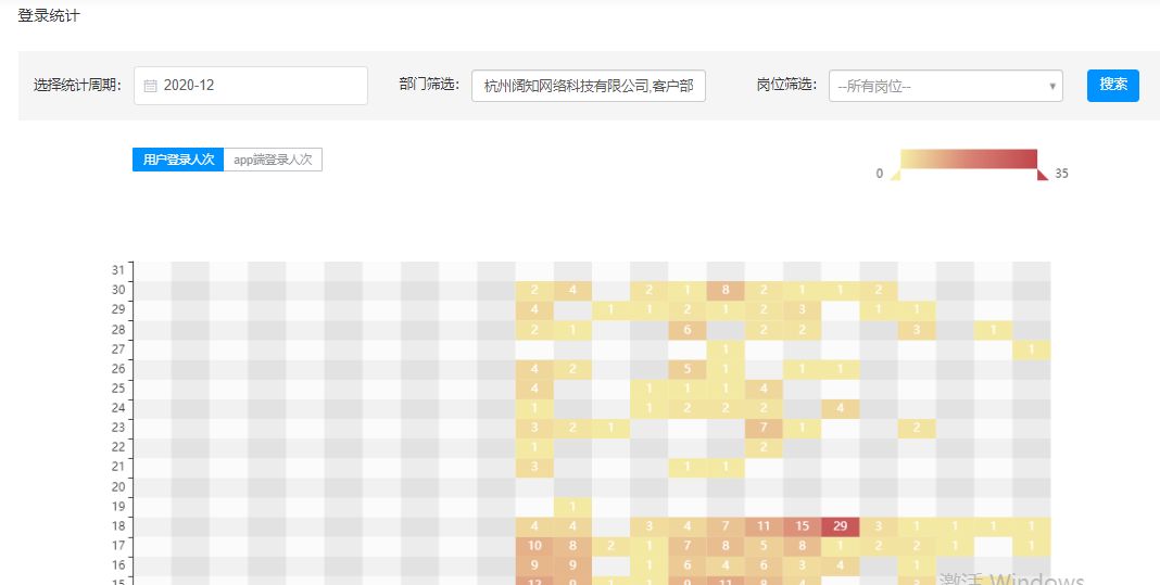 总人数:显示当前系统中未封禁的用户数(不受选择时间段条件、入职时间条件影响)