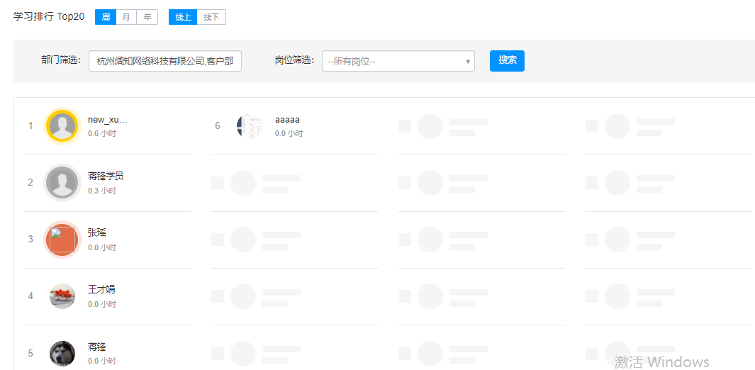 根据线上/线下课程一周/月/年学习总时长排序,排序正确
