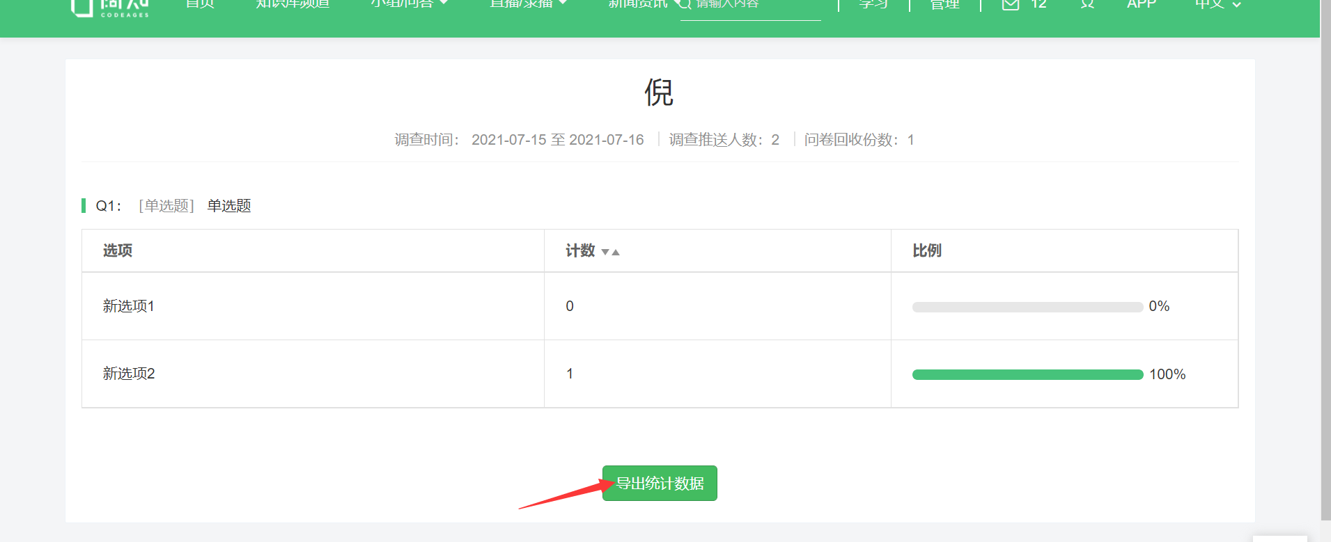 学员就可以在问卷提交后跳转至以下问卷答题详情的页面-并支持导出统计数据。
