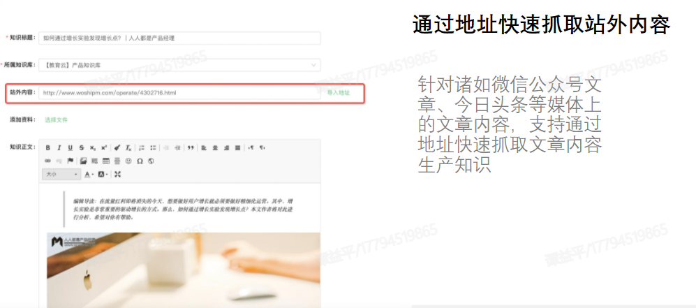 针对某个知识,可以在正文中插入视频、音频、word、PPT、PDF等,并支持在线查看。
