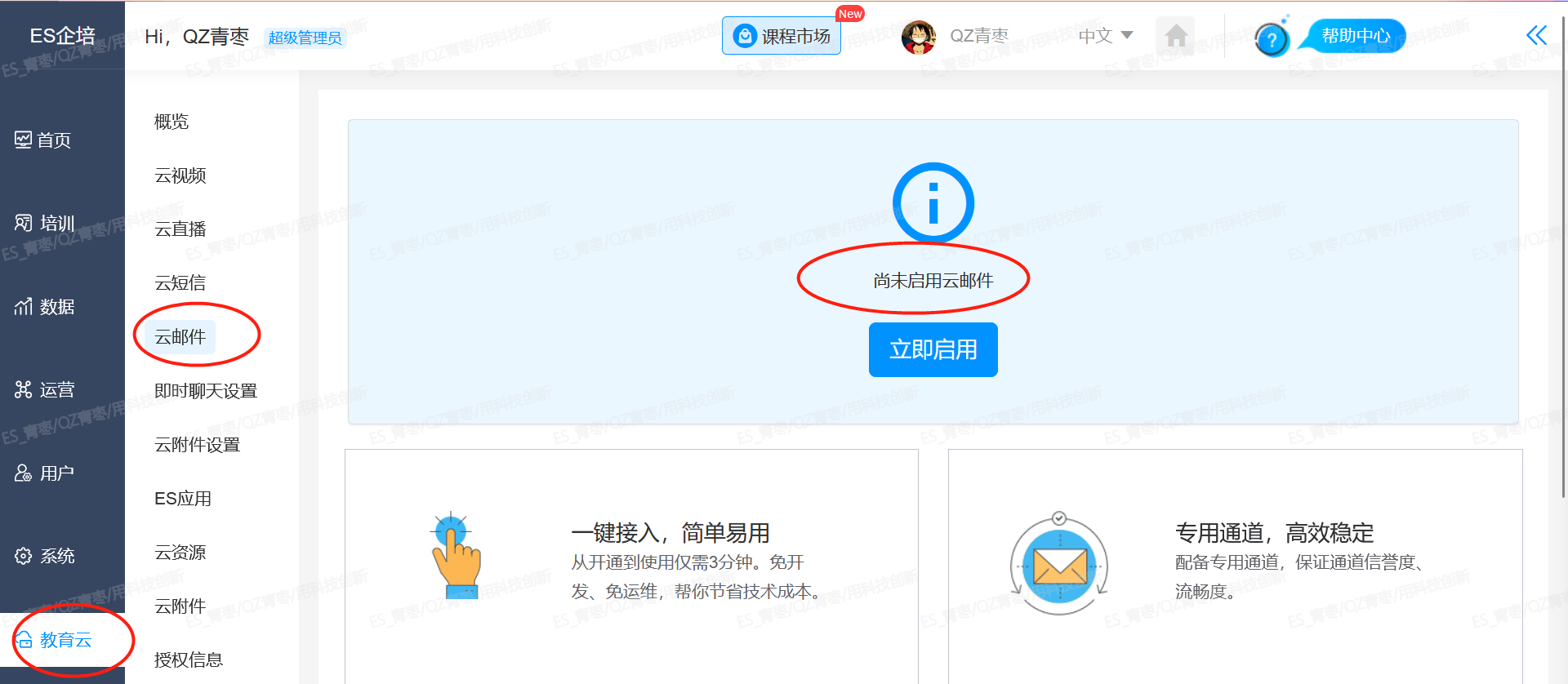 注意:1)若点击邮件服务设置没有显示上面截图页面,需要点击教育云--云邮件里关闭一下云邮件,后在打开系统--信息通知中心--邮件服务设置就可以填写邮箱帐号授权信息。