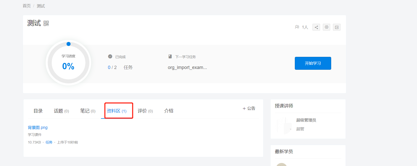 方式一:将资料添加到课程资料区