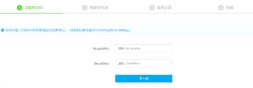 授权码=AccessKey +SecretKey,在网站后台【教育云】-【授权信息】中查看;