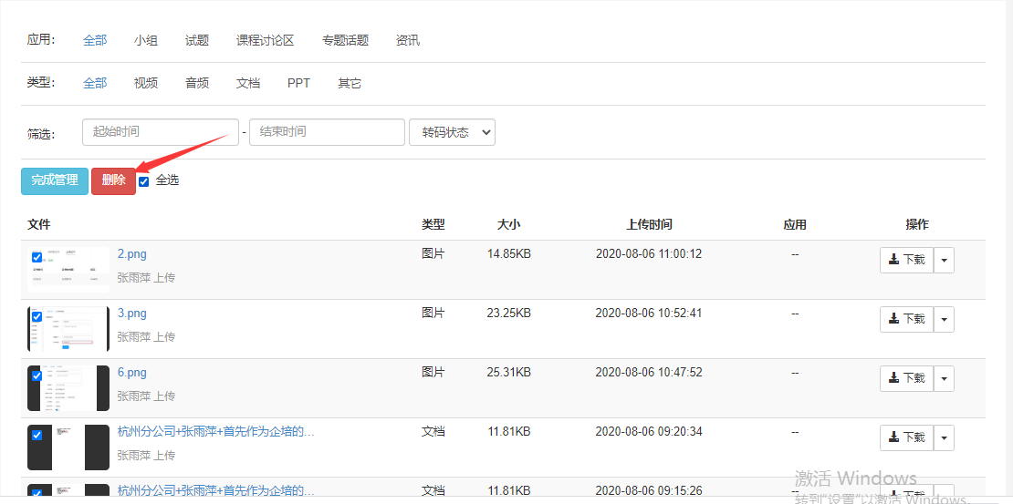 路径:【管理后台】-【教育云】-【云附件】,批量管理,选择需要删除的云附件,进行删除。