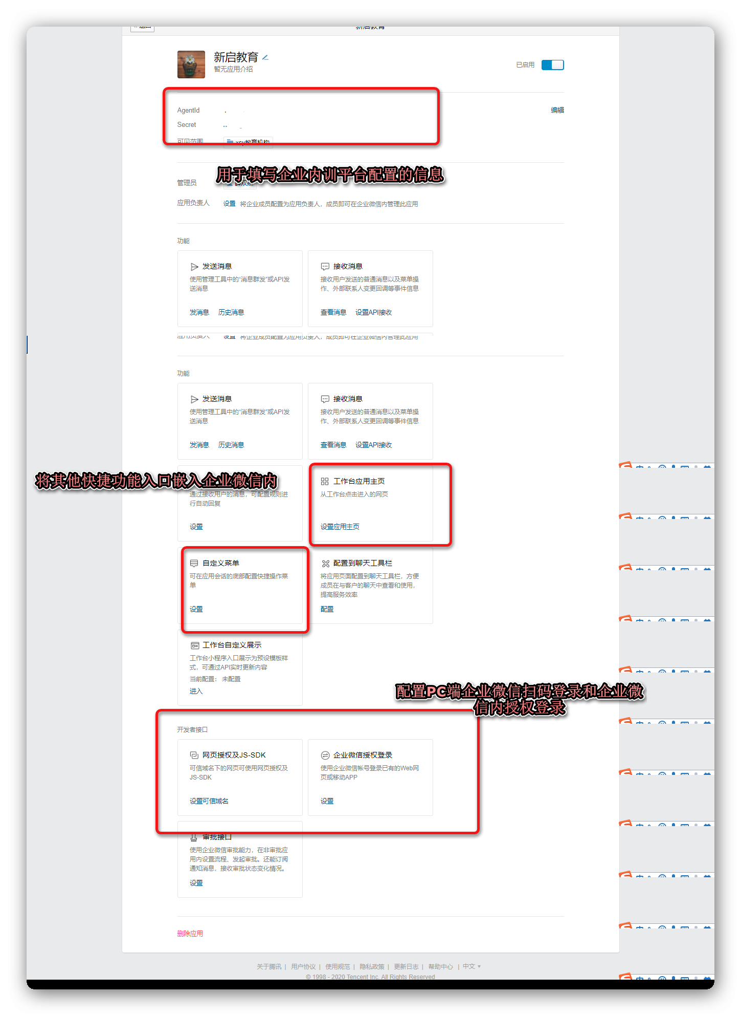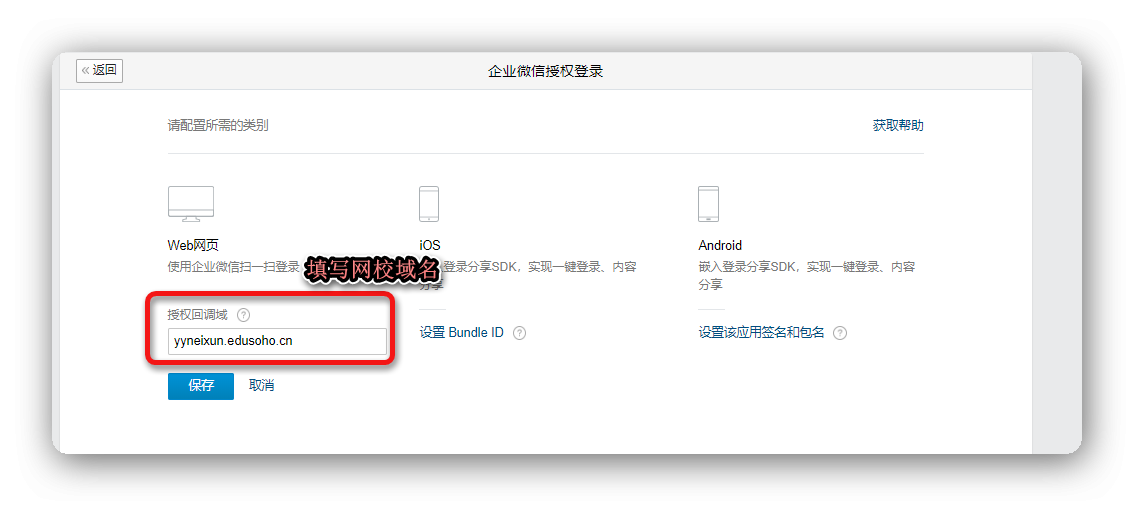6)企业微信内免登(企业微信授权登录),如图所示,填写网校系统域名。