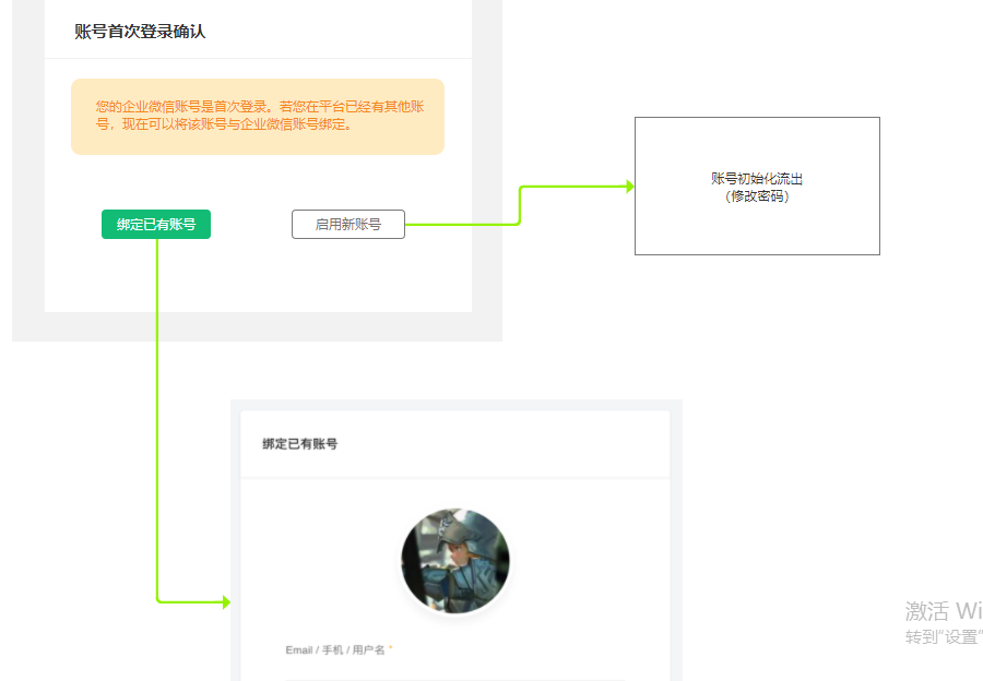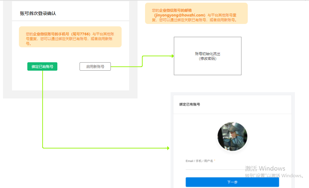 1.使用企业微信登录,手机号/邮箱冲突 询问是否进行绑定
