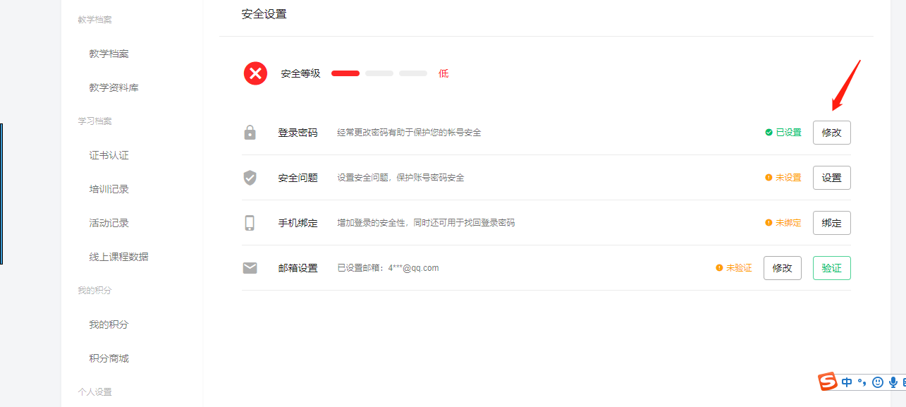 1、进入个人中心,个人设置-安全设置-修改密码,