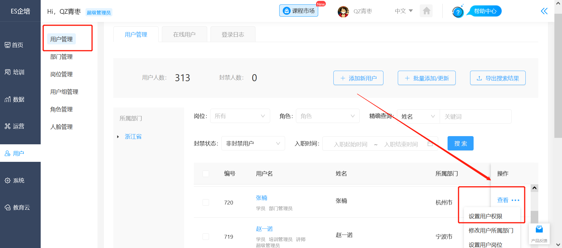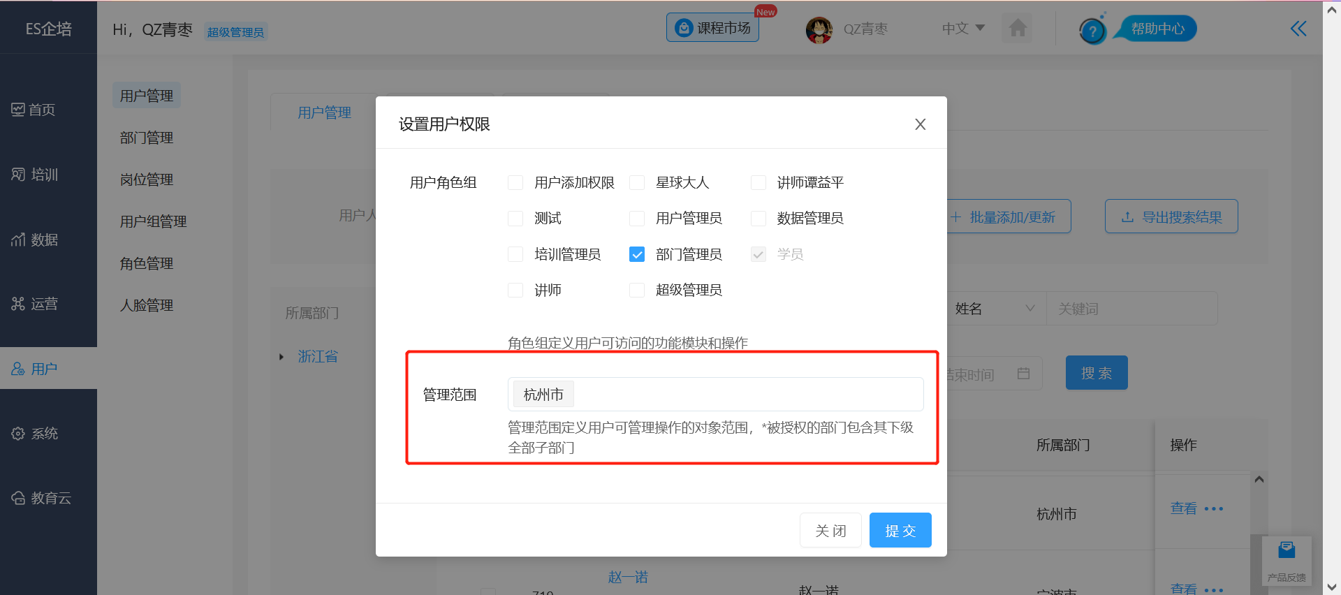 我们超管经常性地遇到这样的问题,明明给了账号管理员的权限,但是账号登录进去看不到线上课程,这个大部分情况是因为账号管理范围的未设置。
