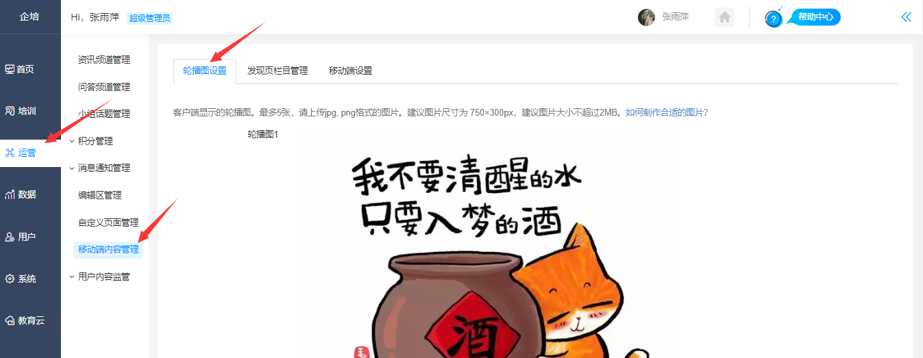 设置路径:【管理后台】-【运营】-【移动端内容管理】-【轮播图设置】