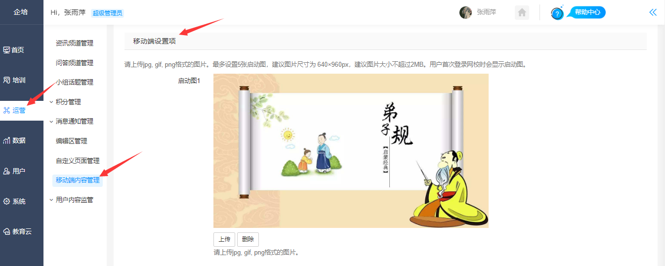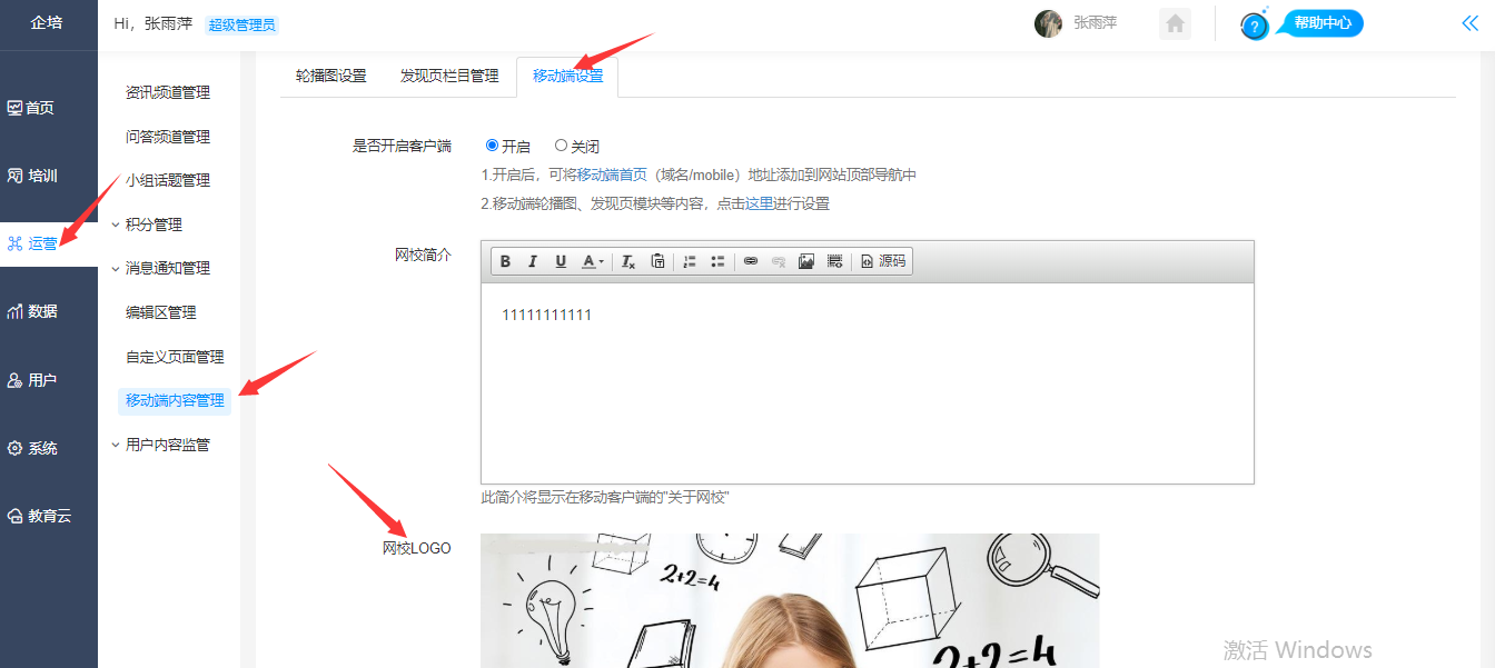 设置路径:【管理后台】-【系统】-【移动端设置】,用户首次登录网校时会显示启动图。