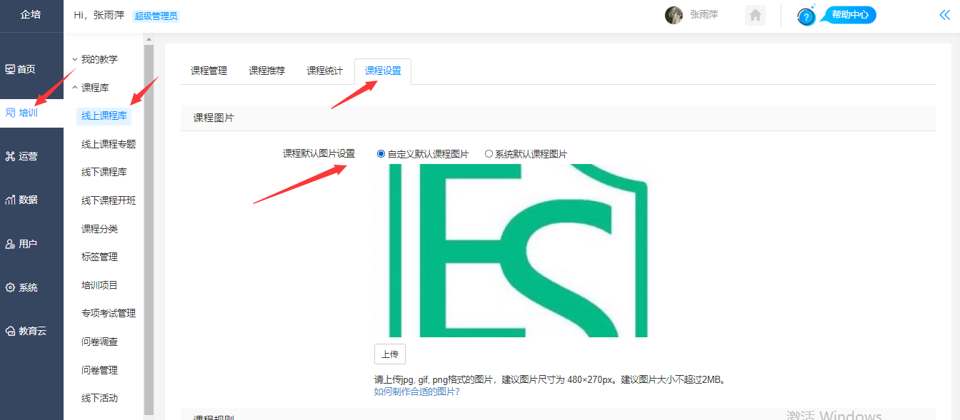 设置路径:【管理后台】-【培训】-【线上课程】-【线上课程库】,打开对应课程管理页面,封面图片