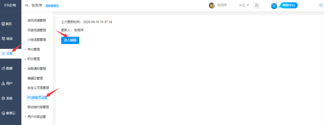 设置路径:【管理后台】-【运营】-【PC端首页设置】,进入编辑,轮播图配置